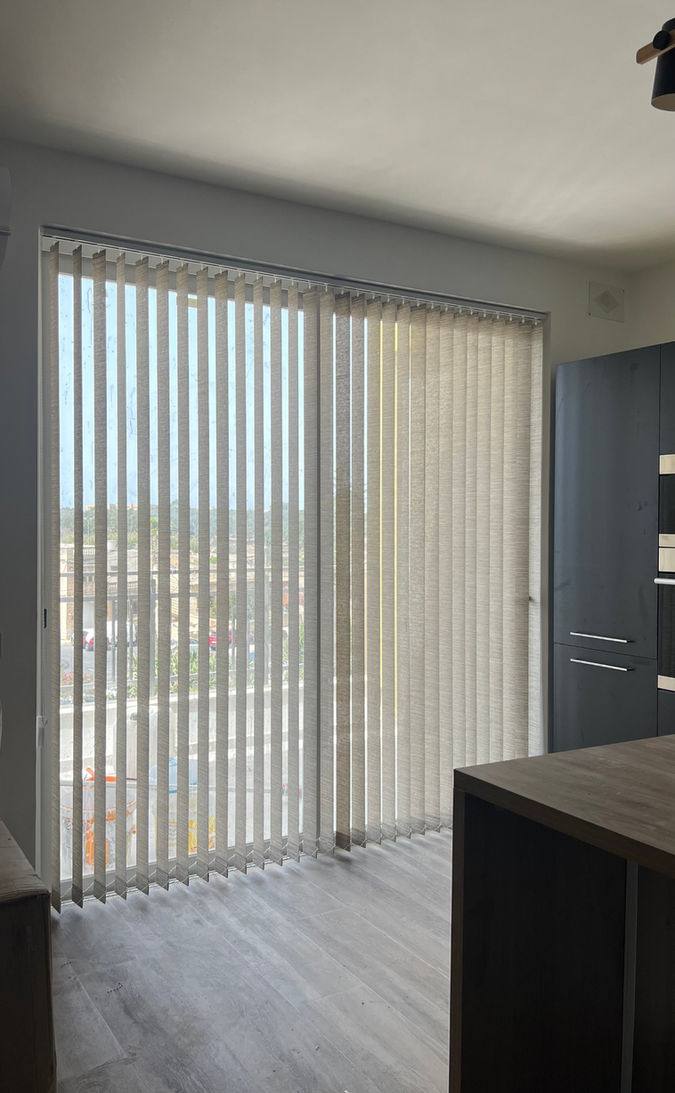 Traditionally, they have been used for commercial offices and businesses as an economical window covering. But the last years the choice of fabrics and colors became wider and the Vertical Blinds became increasingly popular for homes, especially those with large windows, bifold doors or sliding doors, as they look beautiful in large sizes and cover them practically, providing easy control of the light levels. The fabric slats of a Vertical blind are easy to rotate so you can control the light levels whenever you want.